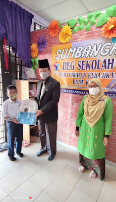PENYAMPAIAN SUMBANGAN BEG SEKOLAH OLEH PERTUBUHAN KEBAJIKAN DANA KITA. Disempurnakan oleh Tn Guru Besar Ustaz Maturidi bin Mohamed, diiringi oleh Puan PKHem Pn Anishah binti Ibrahim dan Puan Pen Kanan Pen. Khas Pn Rushan binti Hanafi.